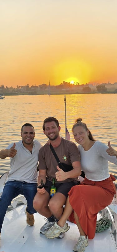 Discover Luxor from a different perspective with our relaxing boat trips on the Nile. Whether you’re looking for a peaceful felucca ride at sunset, a private motorboat tour, or a scenic transfer between the East and West Bank, our boat trips offer a calm and unforgettable way to enjoy the city’s beauty. Glide past temples, palm-lined riverbanks, and traditional villages while taking in the timeless atmosphere of Egypt’s most historic destination.