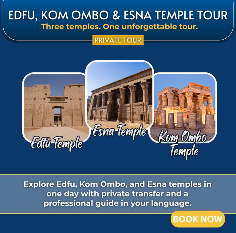 Discover three of Upper Egypt’s most remarkable temples. Esna, Edfu, and Kom Ombo, all in one tour.